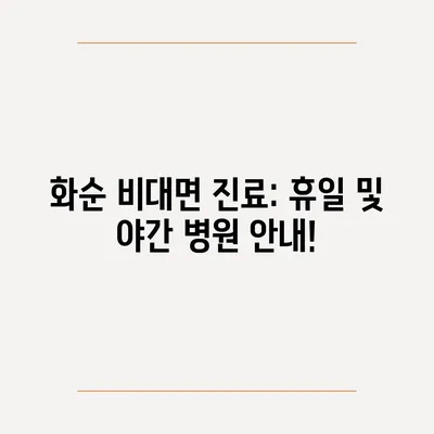 화순의 비대면진료 휴일야간 병원에 대한 정보와 현황을 자세히 알아보세요. 간편한 진료 방법으로 건강을 지키는 팁을 제공합니다.