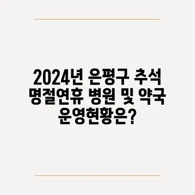2024년 은평구 추석 명절연휴 병원 및 약국 운영현황은?