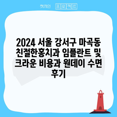 2024 서울 강서구 마곡동 친절한홍치과 임플란트 및 크라운 비용과 원데이 수면 후기