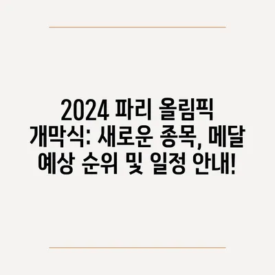 2024 파리 올림픽 개막식: 새로운 종목, 메달 예상 순위 및 일정 안내!