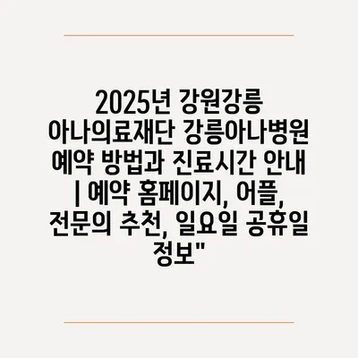 2025년 강원강릉 아나의료재단 강릉아나병원 예약 방법과 진료시간 안내 | 예약 홈페이지, 어플, 전문의 추천, 일요일 공휴일 정보”