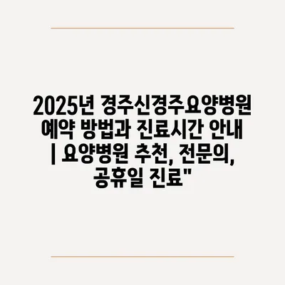 2025년 경주신경주요양병원의 예약 방법과 진료시간을 지금 바로 알아보세요.