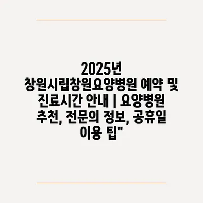 2025년 창원시립창원요양병원 예약 및 진료시간 공지 | 요양병원 추천, 전연락 정보, 공휴일 이용 팁에 대해 자주 묻는 질문 TOP 5