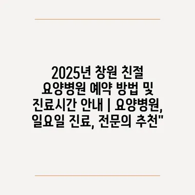 ✅ 2025년 창원 친절 요양병원의 예약 방법과 진료 시간을 자세히 알아보세요.