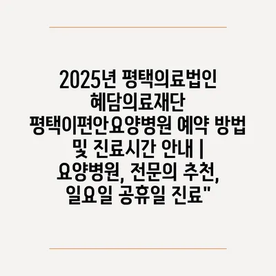 2025년 평택의료법인 혜담의료재단 평택이편안요양병원 예약 방법 및 진료시간 공지 | 요양병원, 전연락 추천, 일요일 공휴일 진료” 에 대해 자주 묻는 질문 TOP 5