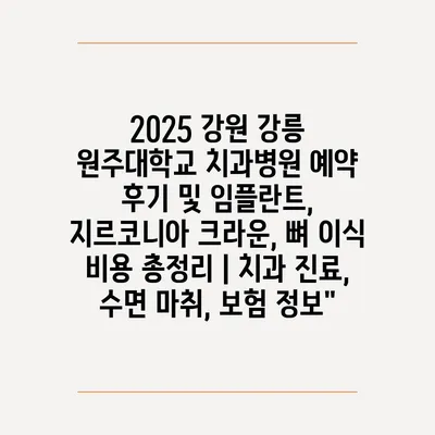 2025 강원 강릉 원주대학교 치과병원 예약 후기 및 임플란트, 지르코니아 크라운, 뼈 이식 비용 총정리 | 치과 진료, 수면 마취, 보험 정보에 대해 자주 묻는 질문 TOP 5