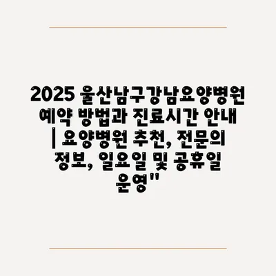 2025 울산남구강남요양병원 예약 방법과 진료시간 공지 | 요양병원 추천, 전연락 정보, 일요일 및 공휴일 운영에 대해 자주 묻는 질문 TOP 5