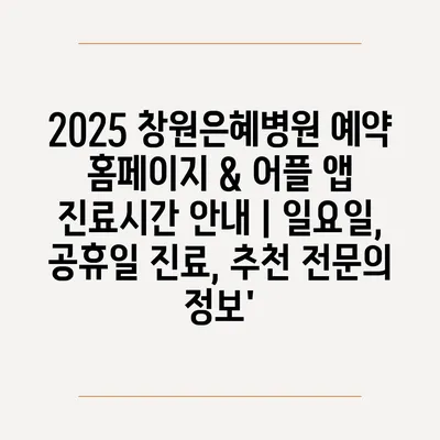 2025 창원은혜병원 예약 홈페이지 & 어플 앱 진료시간 공지 | 일요일, 공휴일 진료, 추천 전연락 정보’ 에 대해 자주 묻는 질문 TOP 5