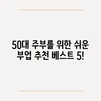 💡 50대 주부에게 적합한 부업 아이디어를 지금 바로 확인해 보세요! 💡