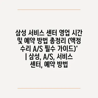 삼성서비스센터 영업 시간 및 예약 방법 총정리 | 서비스 안내, 고객 지원, 실제 이용 팁