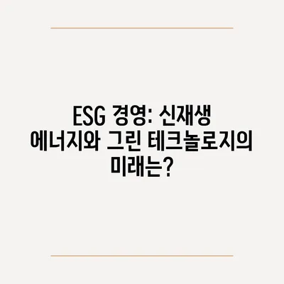ESG 경영: 신재생 에너지와 그린 테크놀로지의 미래는?
