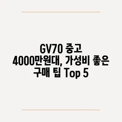 GV70 중고 4000만원대, 가성비 좋은 구매 팁 Top 5