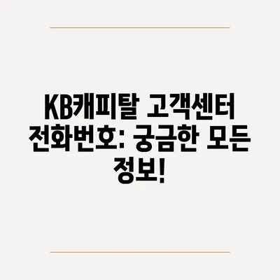 KB캐피탈 고객센터 전화번호: 궁금한 모든 정보!