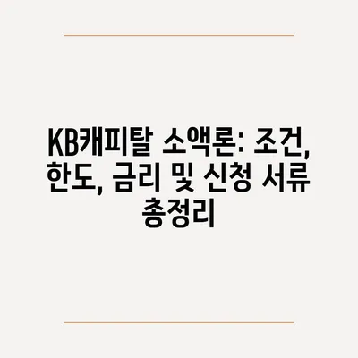 💡 KB캐피탈 소액론의 조건과 한도를 쉽게 알아보세요. 💡