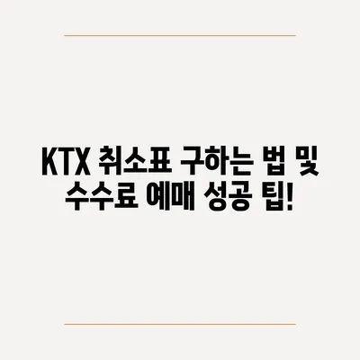 A: 일반적으로 KTX 취소표 구입 시 수수료가 발생하지 않지만, 결제 방법에 따라 일부 수수료가 있을 수 있으므로 사전에 확인이 필요합니다.