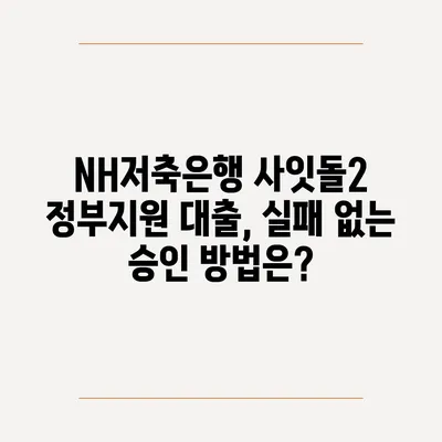 정부지원대출 NH저축은행 사잇돌2 대출 승인 방법을 자세히 알아보세요. 중·저신용자를 위한 심층 가이드!