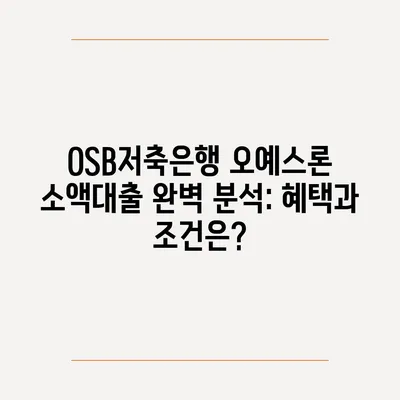 OSB저축은행 오예스론 소액대출 완벽 분석: 혜택과 조건은?