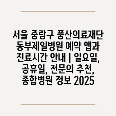 서울 중랑구 풍산의료재단 동부제일병원 예약 앱과 진료시간 안내 | 일요일, 공휴일, 전문의 추천, 종합병원 정보 2025