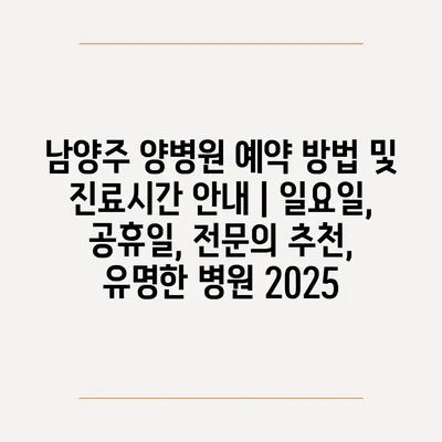 남양주 양병원 예약 방법 및 진료시간 안내 | 일요일, 공휴일, 전문의 추천, 유명한 병원 2025