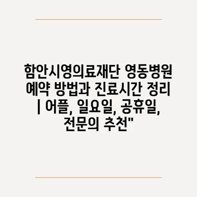 함안시영의료재단 영동병원 예약 방법과 진료시간 정리 | 어플, 일요일, 공휴일, 전문의 추천”