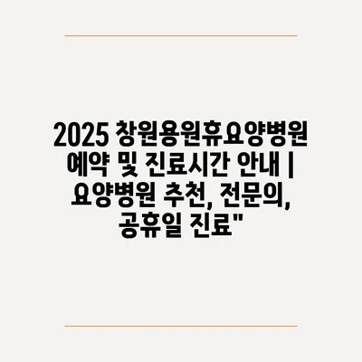 2025 창원용원휴요양병원 예약 및 진료시간 안내 | 요양병원 추천, 전문의, 공휴일 진료”
