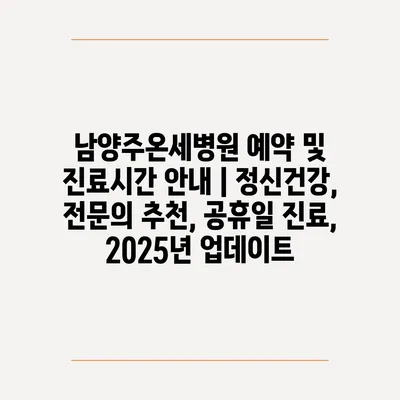 남양주온세병원 예약 및 진료시간 안내 | 정신건강, 전문의 추천, 공휴일 진료, 2025년 업데이트