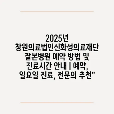 2025년 창원의료법인신화성의료재단 잘본병원 예약 방법 및 진료시간 안내 | 예약, 일요일 진료, 전문의 추천”