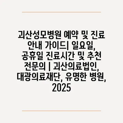 괴산성모병원 예약 및 진료 안내 가이드| 일요일, 공휴일 진료시간 및 추천 전문의 | 괴산의료법인, 대광의료재단, 유명한 병원, 2025