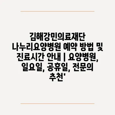 김해강민의료재단 나누리요양병원 예약 방법 및 진료시간 안내 | 요양병원, 일요일, 공휴일, 전문의 추천’