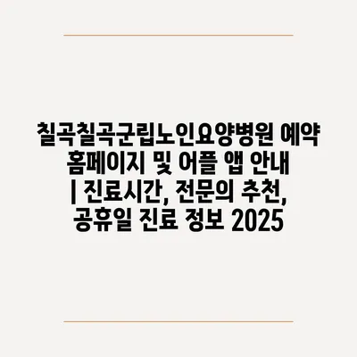 칠곡칠곡군립노인요양병원 예약 홈페이지 및 어플 앱 안내 | 진료시간, 전문의 추천, 공휴일 진료 정보 2025