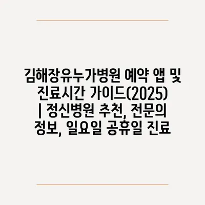 김해장유누가병원 예약 앱 및 진료시간 가이드(2025) | 정신병원 추천, 전문의 정보, 일요일 공휴일 진료