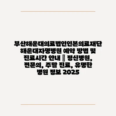 부산해운대의료법인인본의료재단해운대자명병원 예약 방법 및 진료시간 안내 | 정신병원, 전문의, 주말 진료, 유명한 병원 정보 2025