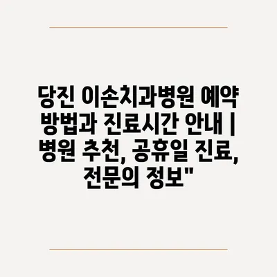 당진 이손치과병원 예약 방법과 진료시간 안내 | 병원 추천, 공휴일 진료, 전문의 정보”