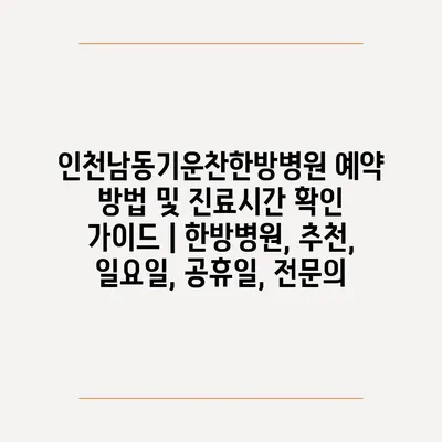 인천남동기운찬한방병원 예약 방법 및 진료시간 확인 가이드 | 한방병원, 추천, 일요일, 공휴일, 전문의