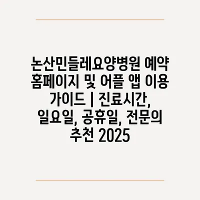 논산민들레요양병원 예약 홈페이지 및 어플 앱 이용 가이드 | 진료시간, 일요일, 공휴일, 전문의 추천 2025