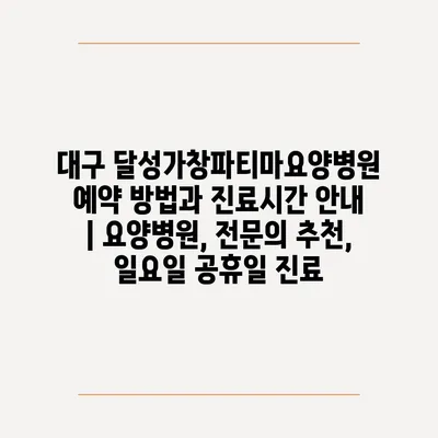 대구 달성가창파티마요양병원 예약 방법과 진료시간 안내 | 요양병원, 전문의 추천, 일요일 공휴일 진료