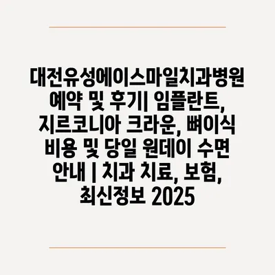 대전유성에이스마일치과병원 예약 및 후기| 임플란트, 지르코니아 크라운, 뼈이식 비용 및 당일 원데이 수면 안내 | 치과 치료, 보험, 최신정보 2025