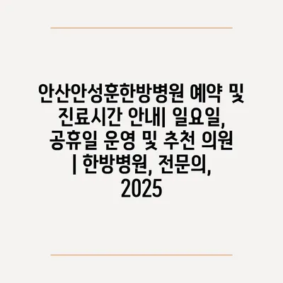 안산안성훈한방병원 예약 및 진료시간 안내| 일요일, 공휴일 운영 및 추천 의원 | 한방병원, 전문의, 2025