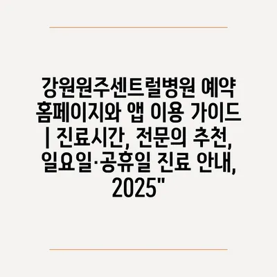 강원원주센트럴병원 예약 홈페이지와 앱 이용 가이드 | 진료시간, 전문의 추천, 일요일·공휴일 진료 안내, 2025″