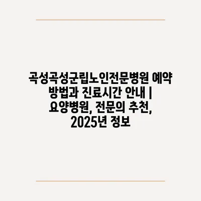 곡성곡성군립노인전문병원 예약 방법과 진료시간 안내 | 요양병원, 전문의 추천, 2025년 정보