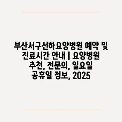 부산서구선하요양병원 예약 및 진료시간 안내 | 요양병원 추천, 전문의, 일요일 공휴일 정보, 2025