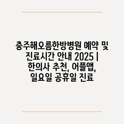 충주해오름한방병원 예약 및 진료시간 안내 2025 | 한의사 추천, 어플앱, 일요일 공휴일 진료