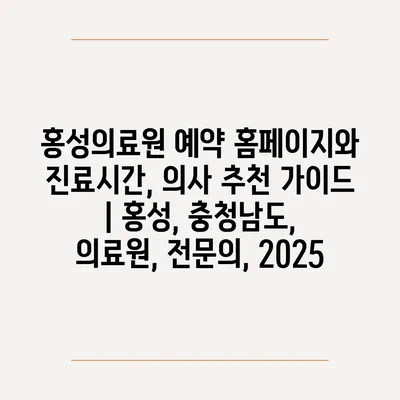 홍성의료원 예약 홈페이지와 진료시간, 의사 추천 가이드 | 홍성, 충청남도, 의료원, 전문의, 2025