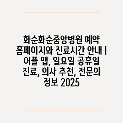 화순화순중앙병원 예약 홈페이지와 진료시간 안내 | 어플 앱, 일요일 공휴일 진료, 의사 추천, 전문의 정보 2025