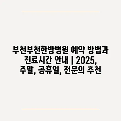 부천부천한방병원 예약 방법과 진료시간 안내 | 2025, 주말, 공휴일, 전문의 추천