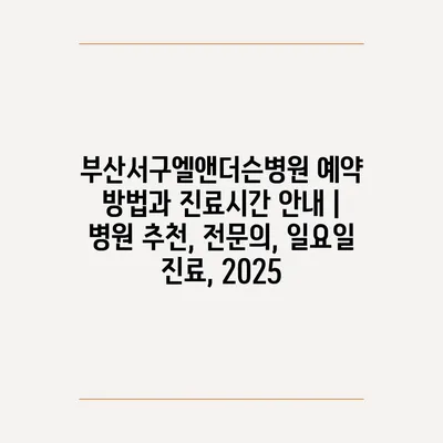 부산서구엘앤더슨병원 예약 방법과 진료시간 안내 | 병원 추천, 전문의, 일요일 진료, 2025