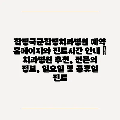 함평국군함평치과병원 예약 홈페이지와 진료시간 안내 | 치과병원 추천, 전문의 정보, 일요일 및 공휴일 진료