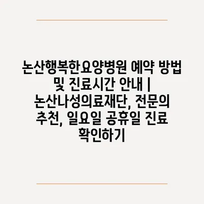 논산행복한요양병원 예약 방법 및 진료시간 안내 | 논산나성의료재단, 전문의 추천, 일요일 공휴일 진료 확인하기
