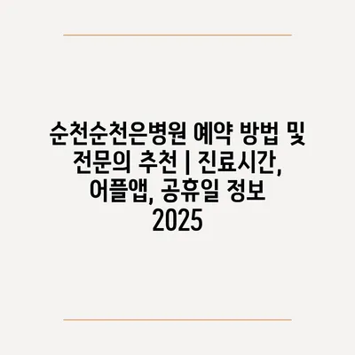 순천순천은병원 예약 방법 및 전문의 추천 | 진료시간, 어플앱, 공휴일 정보 2025