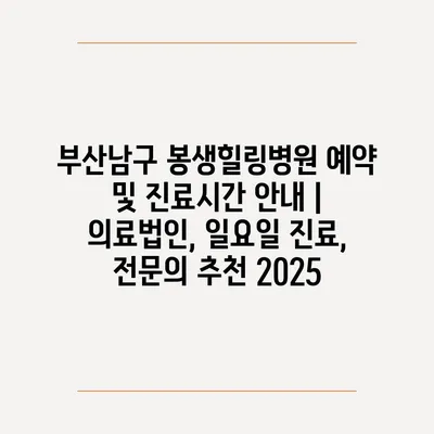 부산남구 봉생힐링병원 예약 및 진료시간 안내 | 의료법인, 일요일 진료, 전문의 추천 2025